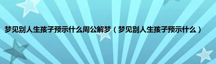 本文梦见别人生孩子预示什么周公解梦,梦见别人生孩子预示什么到此分享完毕,希望对大家有所帮助。