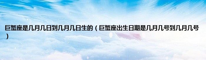 本文巨蟹座是几月几日到几月几日生的,巨蟹座出生日期是几月几号到几月几号到此分享完毕,希望对大家有所帮助。