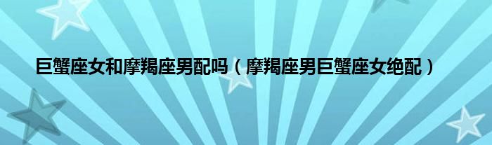大家好,综合小编来为大家讲解下。巨蟹座女和摩羯座男配吗,摩羯座男巨蟹座女绝配这个很多人还不知道,现在让我们一起来看看吧!