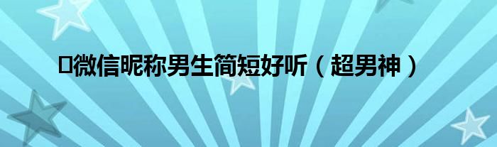大家好,综合小编来为大家讲解下。微信昵称男生简短好听,超男神这个很多人还不知道,现在让我们一起来看看吧!