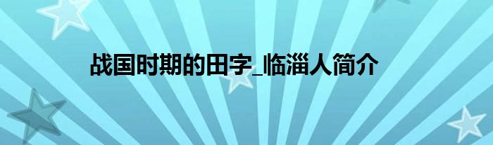 大家好,综合小编来为大家讲解下。战国时期的田字_临淄人简介这个很多人还不知道,现在让我们一起来看看吧!