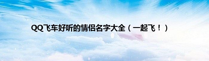 大家好,综合小编来为大家讲解下。QQ飞车好听的情侣名字大全,一起飞!这个很多人还不知道,现在让我们一起来看看吧!