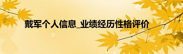 大家好,综合小编来为大家讲解下。戴军个人信息_业绩经历性格评价这个很多人还不知道,现在让我们一起来看看吧!