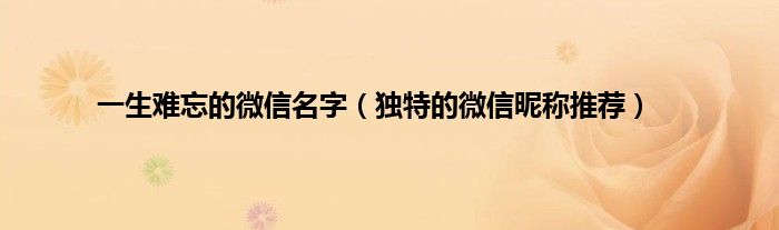 大家好,综合小编来为大家讲解下。一生难忘的微信名字,独特的微信昵称推荐这个很多人还不知道,现在让我们一起来看看吧!