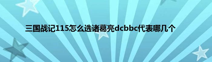 大家好,小问来为大家解答以上问题。三国战记115怎么选诸葛亮dcbbc代表哪几个这个很多人还不知道,现在让我们一起来看看吧!