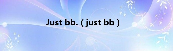 大家好,小问来为大家解答以上问题。Just bb.,just bb这个很多人还不知道,现在让我们一起来看看吧!