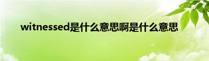 以上就是【witnessed是什么意思啊是什么意思】相关内容。