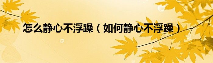 怎么静心不浮躁(如何静心不浮躁)