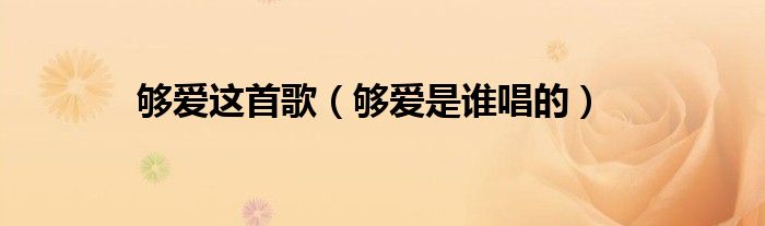 大家好,小问来为大家解答以上问题。够爱这首歌,够爱是谁唱的这个很多人还不知道,现在让我们一起来看看吧!