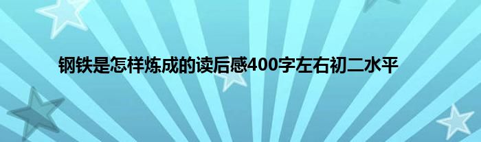 大家好,小问来为大家解答以上问题。钢铁是怎样炼成的读后感400字左右初二水平这个很多人还不知道,现在让我们一起来看看吧!