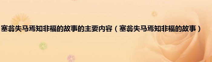 以上就是【塞翁失马焉知非福的故事的主要内容,塞翁失马焉知非福的故事】相关内容。