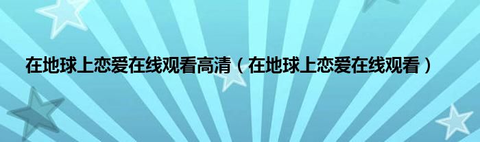 大家好,小问来为大家解答以上问题。在地球上恋爱在线观看高清,在地球上恋爱在线观看这个很多人还不知道,现在让我们一起来看看吧!