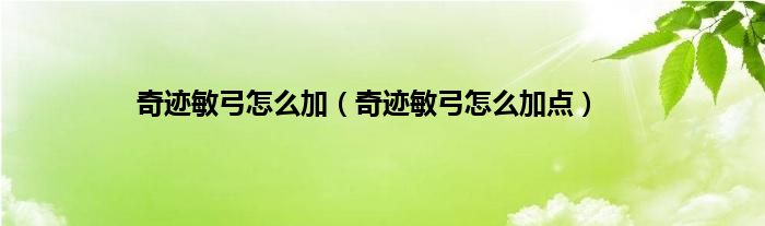 奇迹敏弓怎么加(奇迹敏弓怎么加点)