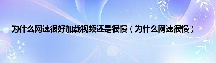 为什么网速很好加载视频还是很慢(为什么网速很慢)