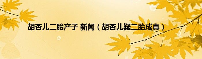 以上就是【胡杏儿二胎产子 新闻,胡杏儿疑二胎成真】相关内容。