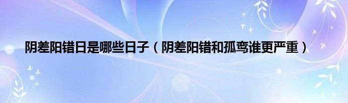 大家好,综合小编来为大家讲解下。阴差阳错日是哪些日子,阴差阳错和孤鸾谁更严重这个很多人还不知道,现在让我们一起来看看吧!