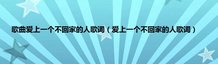 以上就是【歌曲爱上一个不回家的人歌词,爱上一个不回家的人歌词】相关内容。