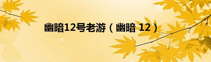 大家好,小问来为大家解答以上问题。幽暗12号老游,幽暗 12这个很多人还不知道,现在让我们一起来看看吧!