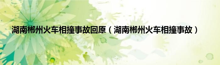 以上就是【湖南郴州火车相撞事故回原,湖南郴州火车相撞事故】相关内容。