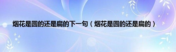大家好,小问来为大家解答以上问题。烟花是圆的还是扁的下一句,烟花是圆的还是扁的这个很多人还不知道,现在让我们一起来看看吧!