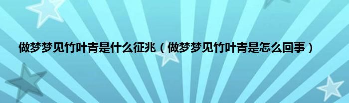 一、 做梦梦见竹叶青的梦境解析 做梦梦见竹叶青,预示你将有外出旅行的机会,但是一个人旅行恐途中有危险,建议结伴同行。