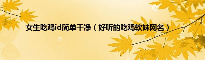 大家好,综合小编来为大家讲解下。女生吃鸡id简单干净,好听的吃鸡软妹网名这个很多人还不知道,现在让我们一起来看看吧!