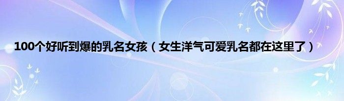 本文100个好听到爆的乳名女孩,女生洋气可爱乳名都在这里了到此分享完毕,希望对大家有所帮助。