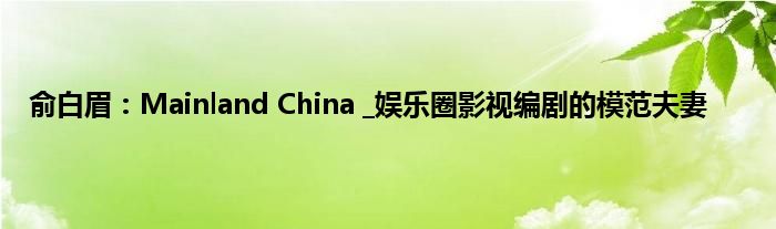 本文俞白眉:Mainland China _娱乐圈影视编剧的模范夫妻到此分享完毕,希望对大家有所帮助。