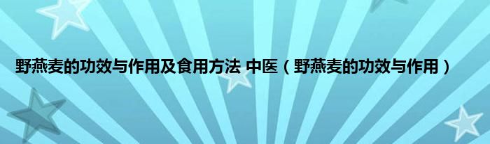 野燕麦的功效与作用及食用方法 中医(野燕麦的功效与作用)