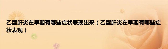 乙型肝炎在早期有哪些症状表现出来(乙型肝炎在早期有哪些症状表现)