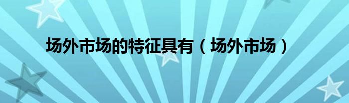 大家好,小问来为大家解答以上问题。场外市场的特征具有,场外市场这个很多人还不知道,现在让我们一起来看看吧!