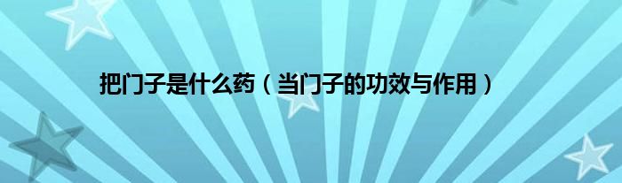 本文,把门子是什么药,当门子的功效与作用到此就分享完毕,希望对大家有所帮助。