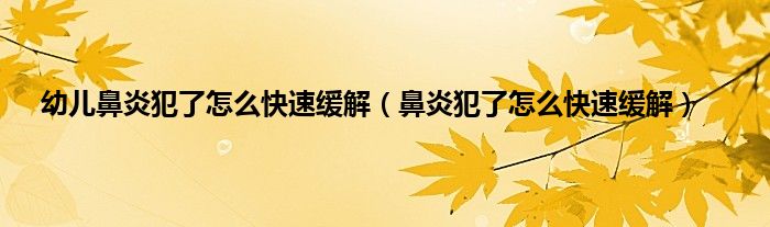 本文,幼儿鼻炎犯了怎么快速缓解,鼻炎犯了怎么快速缓解到此就分享完毕,希望对大家有所帮助。