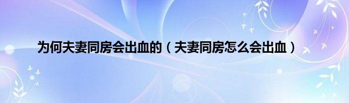 为何夫妻同房会出血的(夫妻同房怎么会出血)