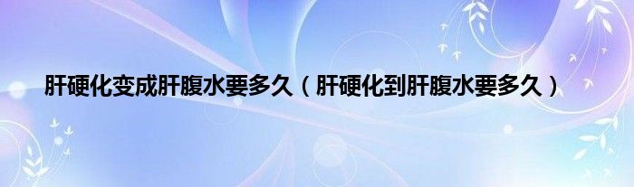 本文,肝硬化变成肝腹水要多久,肝硬化到肝腹水要多久到此就分享完毕,希望对大家有所帮助。