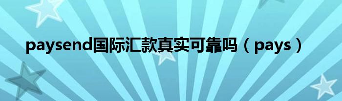 大家好,小问来为大家解答以上问题。paysend国际汇款真实可靠吗,pays这个很多人还不知道,现在让我们一起来看看吧!
