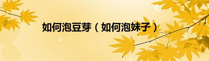 大家好,小问来为大家解答以上问题。如何泡豆芽,如何泡妹子这个很多人还不知道,现在让我们一起来看看吧!