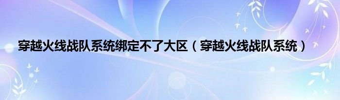 穿越火线战队系统绑定不了大区(穿越火线战队系统)