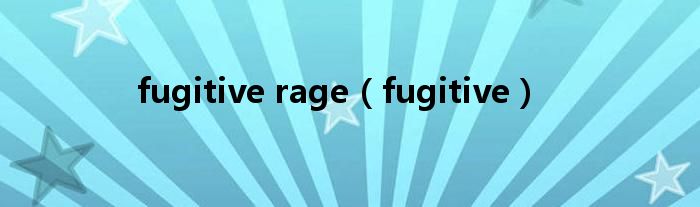 大家好,小问来为大家解答以上问题。fugitive rage,fugitive这个很多人还不知道,现在让我们一起来看看吧!