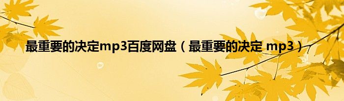 以上就是【最重要的决定mp3百度网盘,最重要的决定 mp3】相关内容。