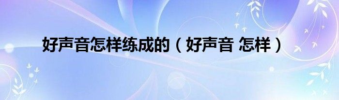 大家好,小问来为大家解答以上问题。好声音怎样练成的,好声音 怎样这个很多人还不知道,现在让我们一起来看看吧!