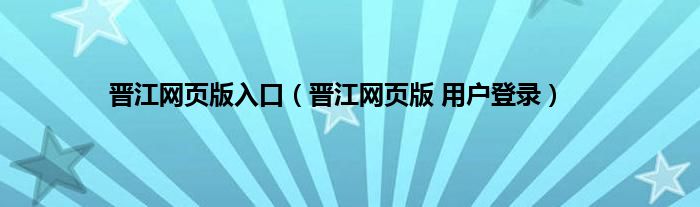 以上就是【晋江网页版入口,晋江网页版 用户登录】相关内容。