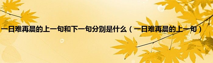 大家好,一日难再晨的上一句和下一句分别是什么,一日难再晨的上一句很多人还不知道,现在让我们一起来看看吧!